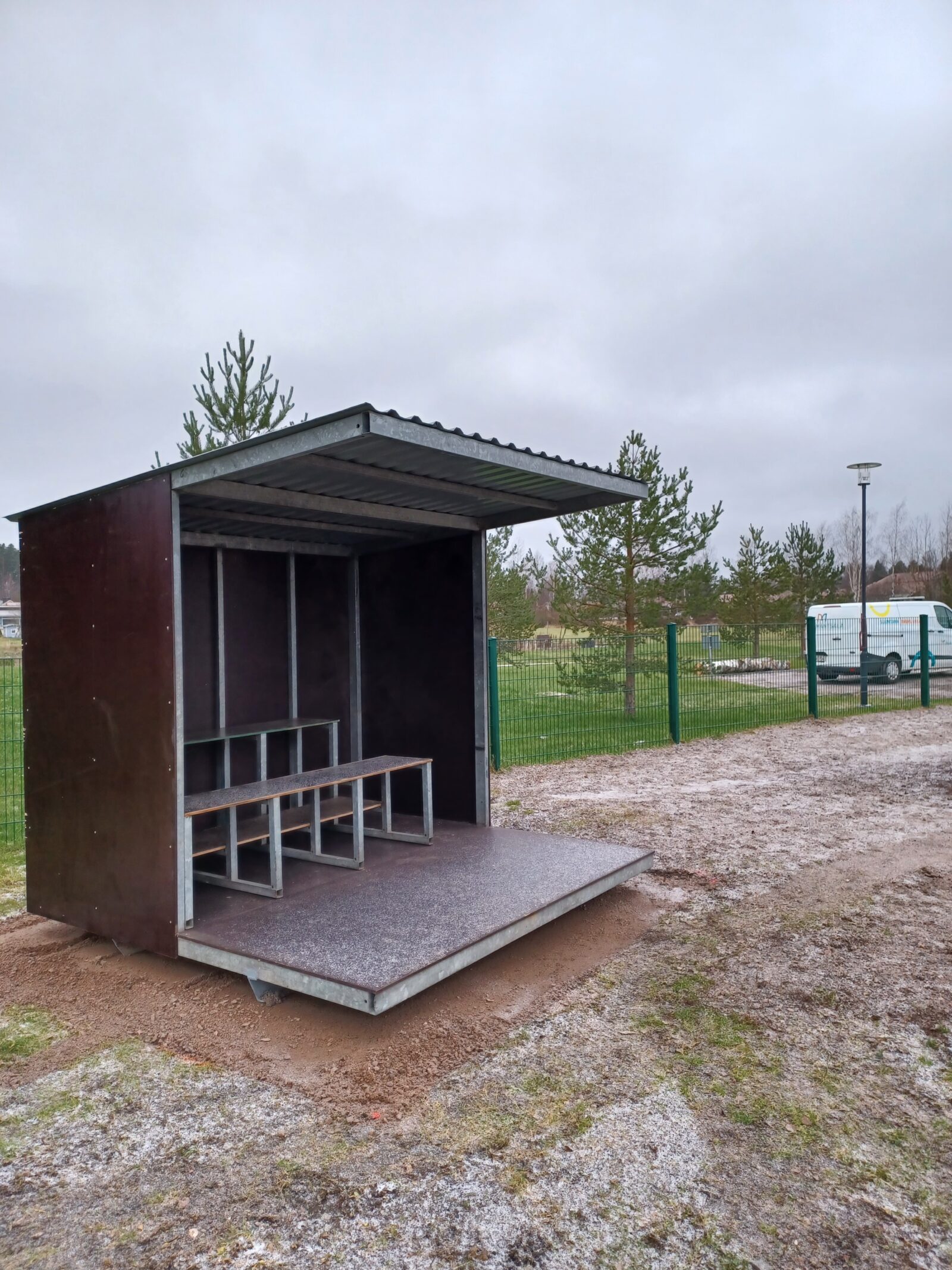 Koirapuistoon on tänään asennettu toivotut katokset koiranomistajien suojaksi.