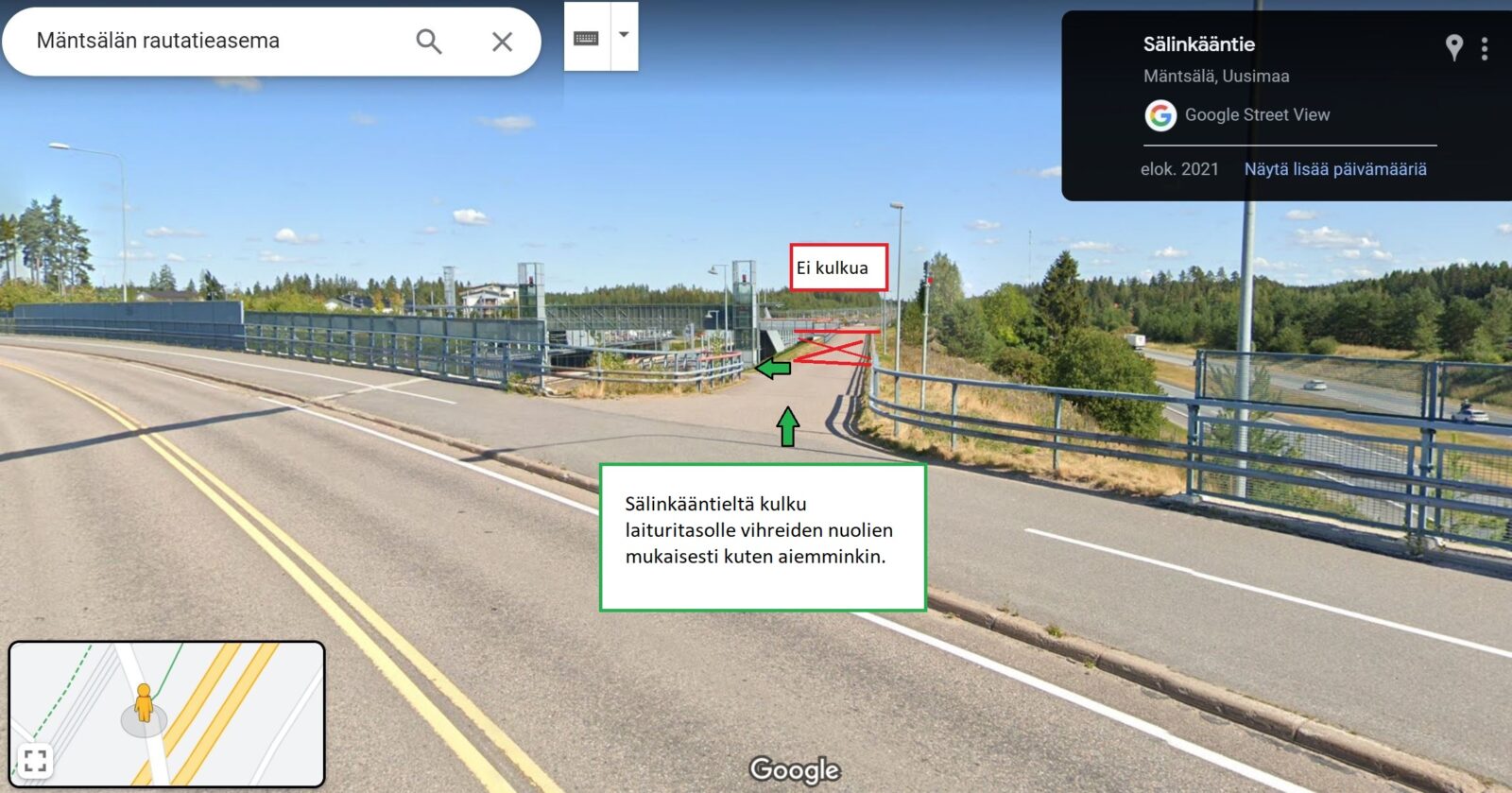Muutoin rajoitteita normaaliin tilanteeseen ei ole. Sälinkääntieltä Lahden suunnan laiturille on mahdollista kulkea kuvien vihreiden nuolien mukaisesti kuten aiemminkin. Asemasillalle pääsee Asemakadun puoleisesta suunnasta sekä laituritasoilta portaita tai hissiä käyttäen.