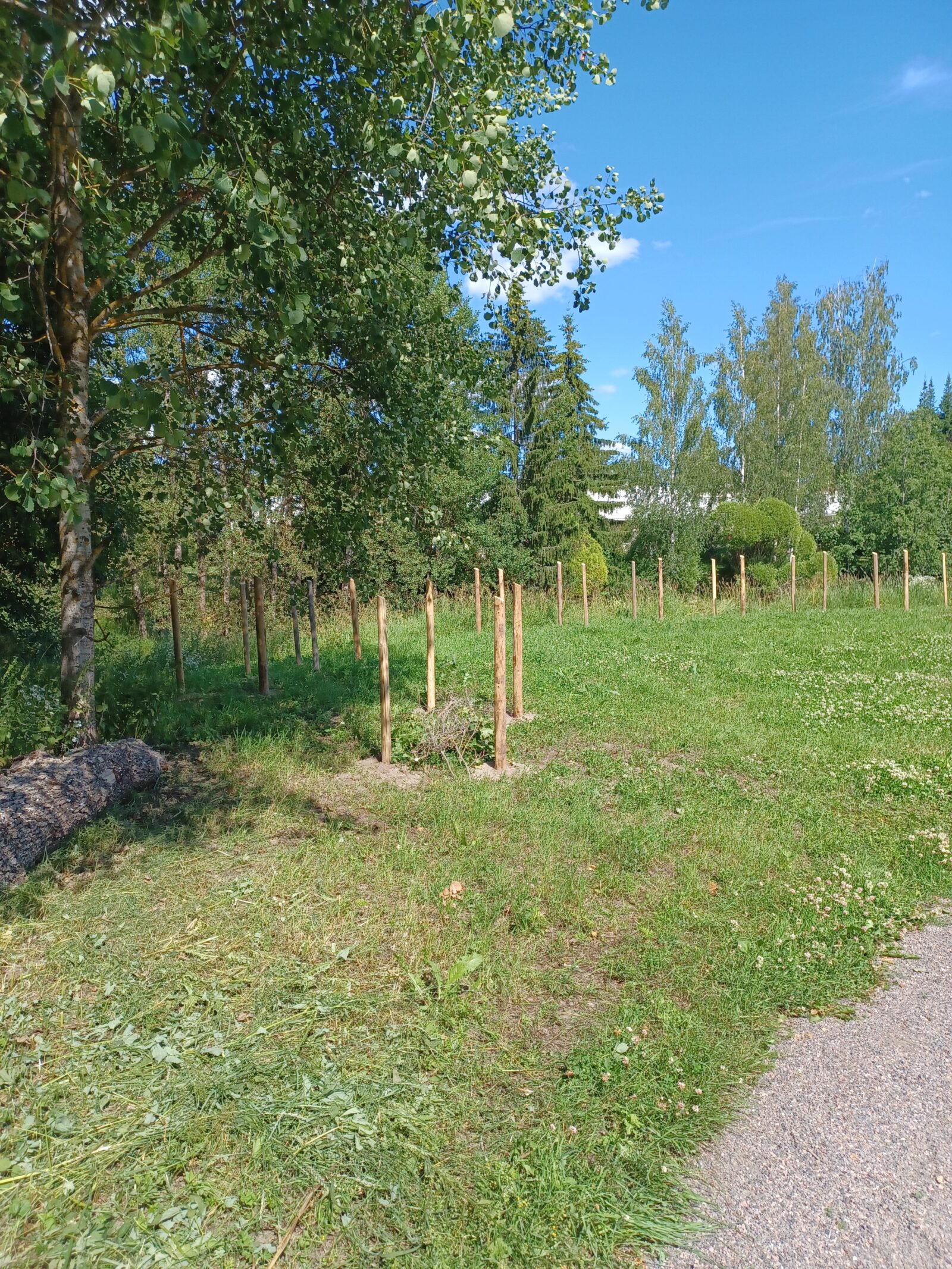 Nyt on tuotu ötököille ja pieneliöille ruokaa joen varteen Jukka Hanhisen raitille. Paalujen väliin rakennamme risuaitaa pikkuhiljaa risujen kertyessä.