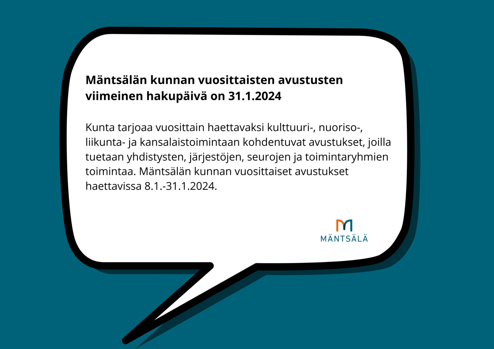 Mäntsälän kunnan vuosittaisten avustusten haku päättyy 31.1.2024
