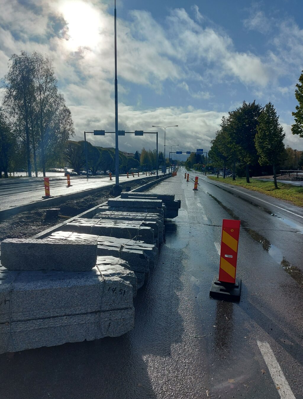 Viikolla 42 eli maanantaina 16.10. alkavalla viikolla Osuustien ja Sälinkääntien välillä jatketaan keskisaarekkeen kantavien kasvualustojen rakentamista ja aloitetaan reunakiveyksen asentamisen valmistelevat työt. Peltolantien ja Osuustien välillä reunakivityöt ovat valmistumassa.