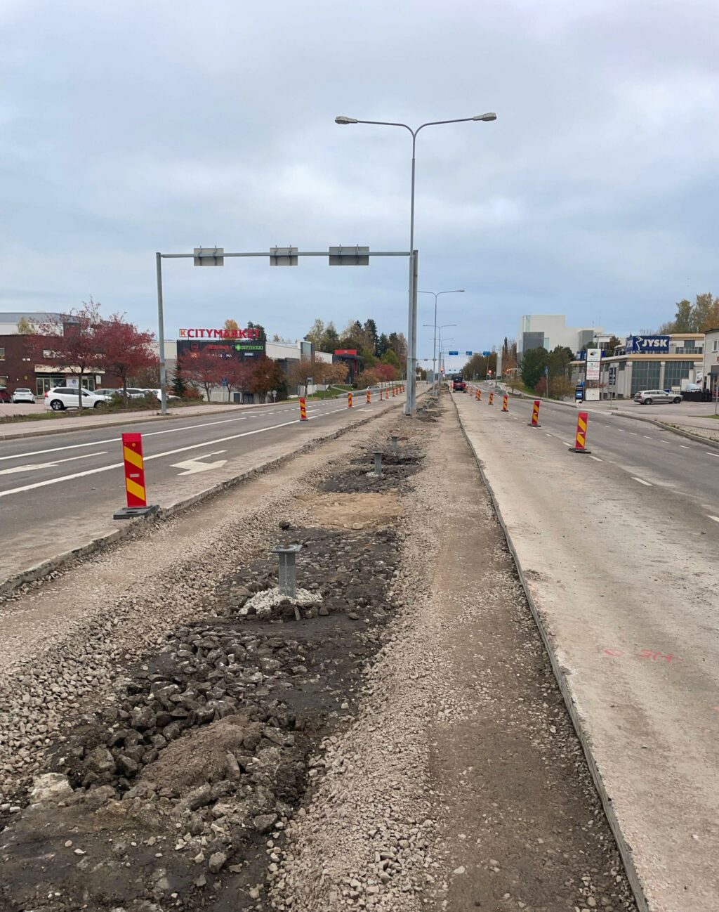 Mt 140 (Lahdentie) keskisaarekkeen uusimistyöt: Reunakivien pohjatyöt jatkuvat Osuustien ja Sälinkääntien välillä viikolla 43