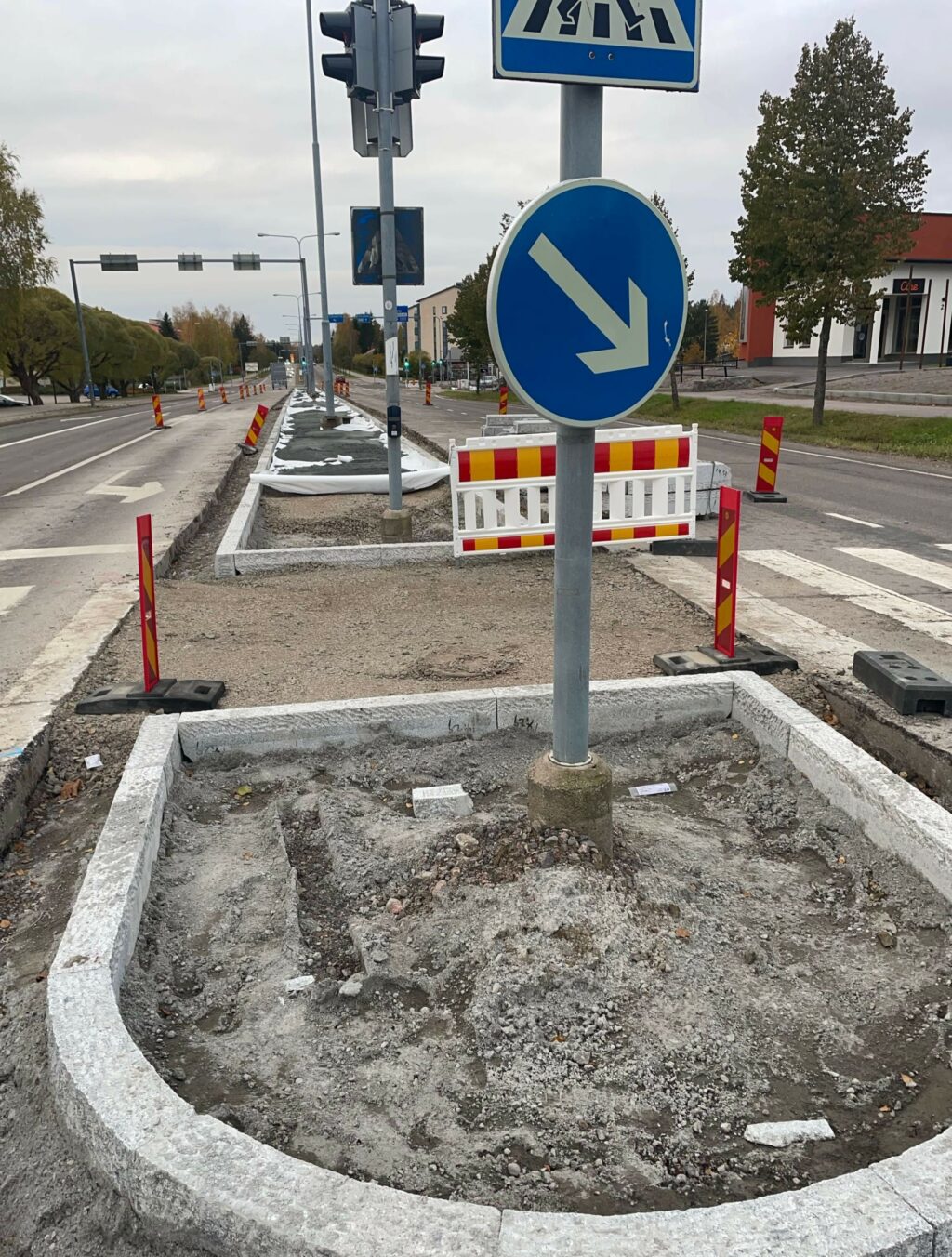 Osuustien ja Sälinkääntien välillä keskisaarekkeen kantavien kasvualustojen rakentaminen ja reunakiveyksen asentamisen valmistelevat työt etenivät suunnitellusti viikolla 42. Reunakivien pohjatöitä jatketaan viikolla 43 eli 23.10. alkavalla viikolla.