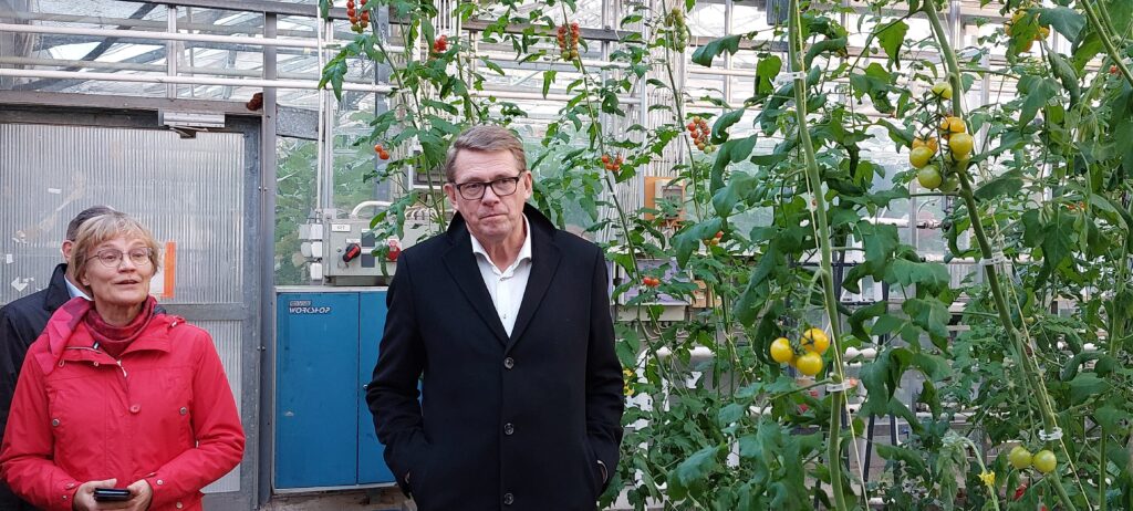 Vierailun päätteeksi tutustuttiin vielä Keudan puutarhaopetuksen kasvihuoneisiin, jossa keskellä lokakuista harmautta loistivat kypsyvät tomaatit ja paprikat sekä tulevaa joulua kohden kurottavat sadat joulutähtien taimet. Kotiinviemisiksi puhemies Vanhanen ja muut vieraat saivat Saaren kartanon omia jauhoja ja vastapoimittuja kasvihuoneiden tuotteita.