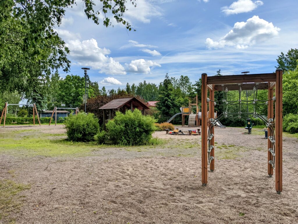 Kotoisa leikkipuisto tarjoaa mukavaa ajanvietettä. Puistossa on keinut pienille ja isoille, kiipeilyteline liukumäellä varustettuna, hiekkalaatikko, jousikeinu sekä karuselli.